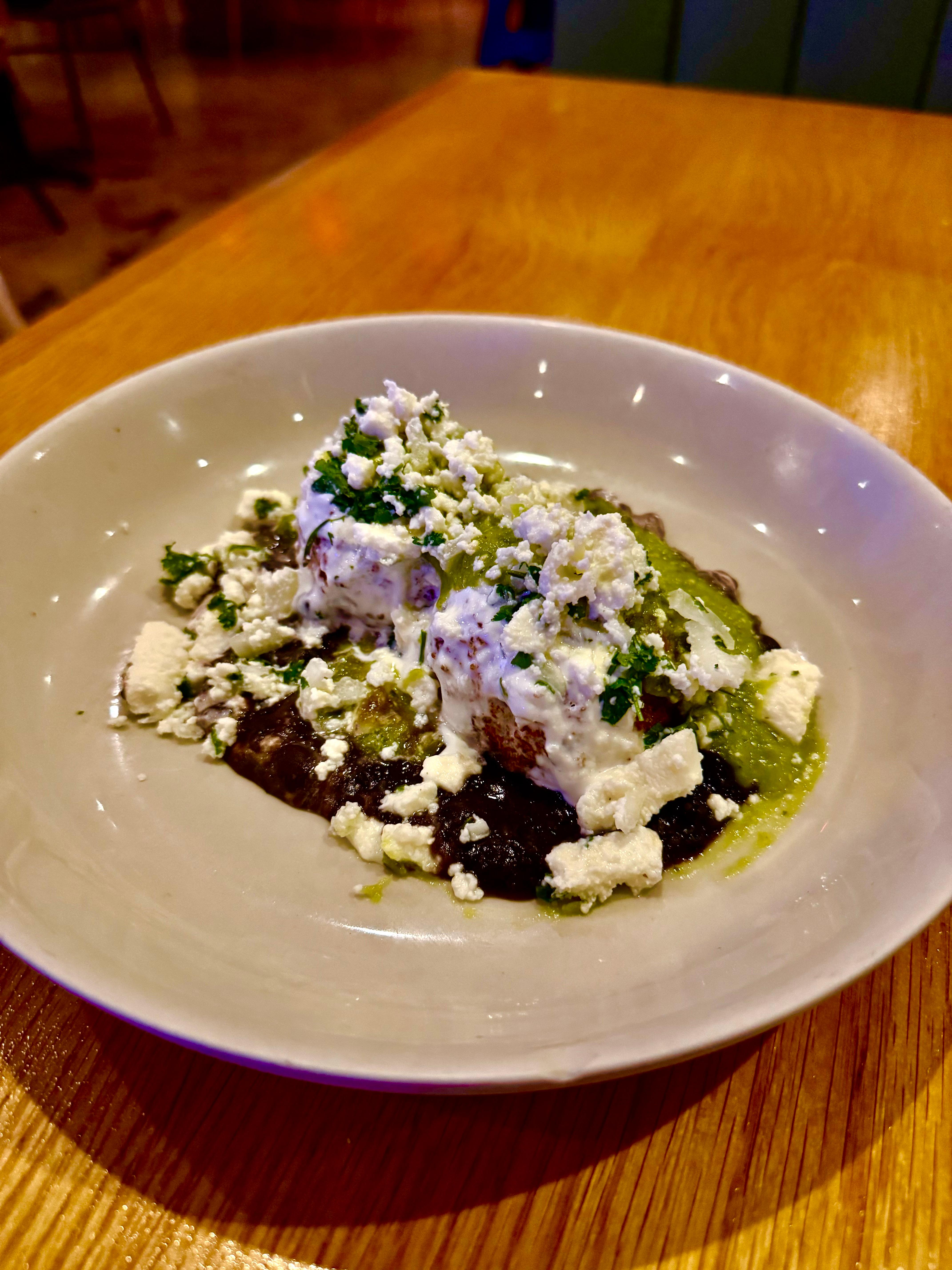 fried potato taquitos, salsa de aguacate, crema, queso fresco (4)